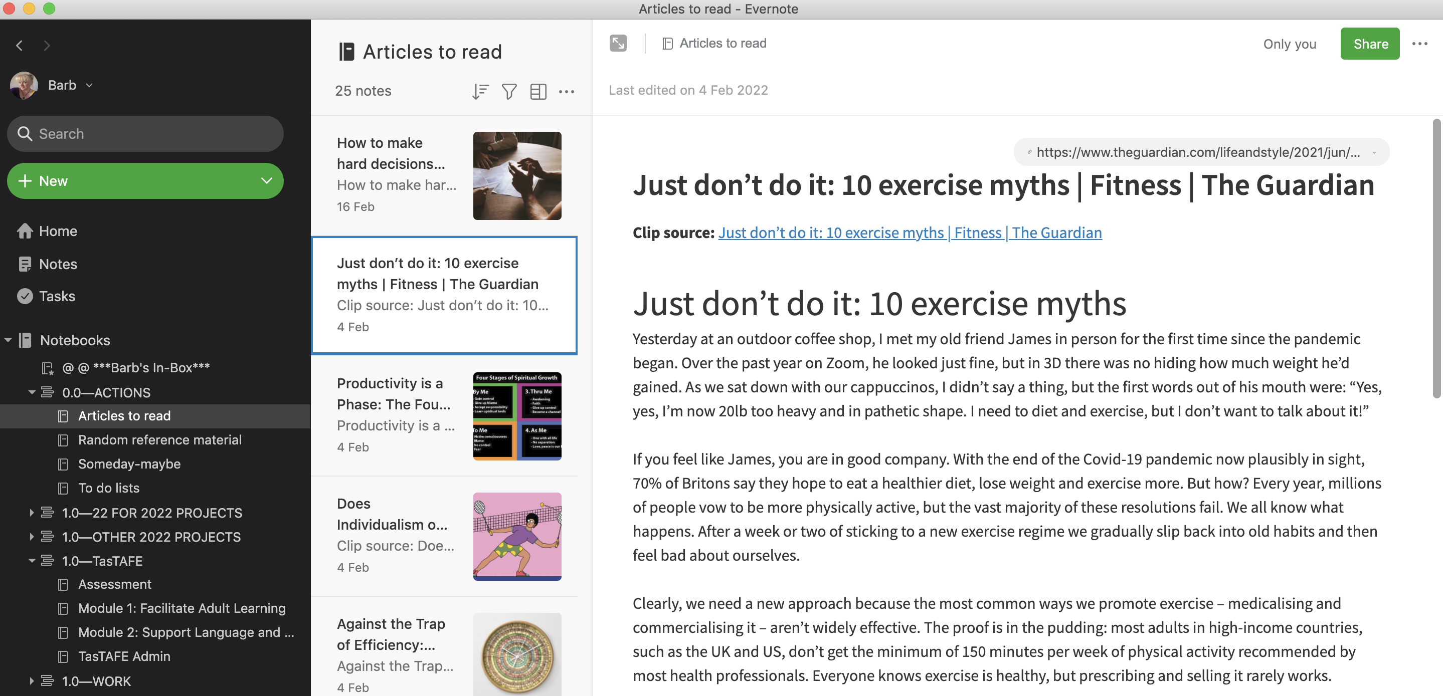I wanted to write a post about Evernote and Todoist because getting them organised is a big part of being able to complete at least two of my 22 for 2022 things (and is actually thing 13). If you’re familiar with these tools, some of this might be old news for you, but bear with me!