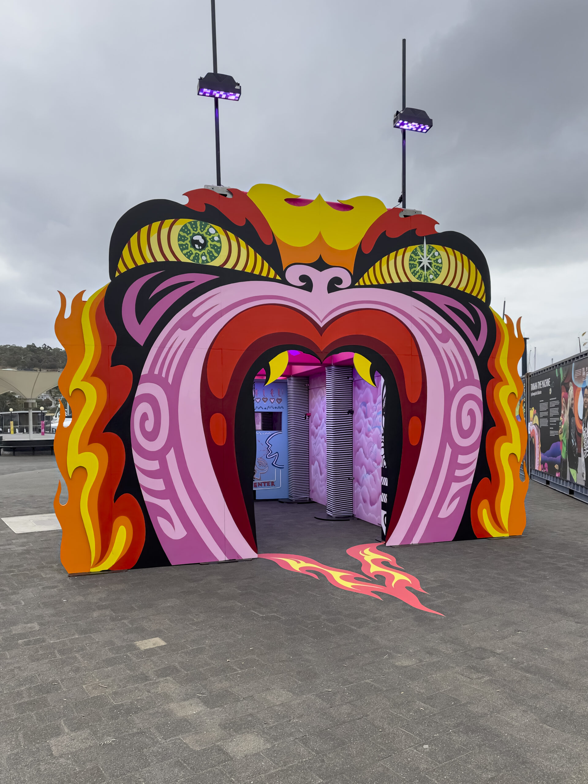 Here we had the opportunity to step through “the giant mouth of the taniwha, representing the Māori legend of Ngake and Whātaitai, who are said to have shaped the landscape of Te Whanganui-a-Tara (Wellington). The two taniwha are over 30 metres of vibrant fun, conjoined by their tails”.